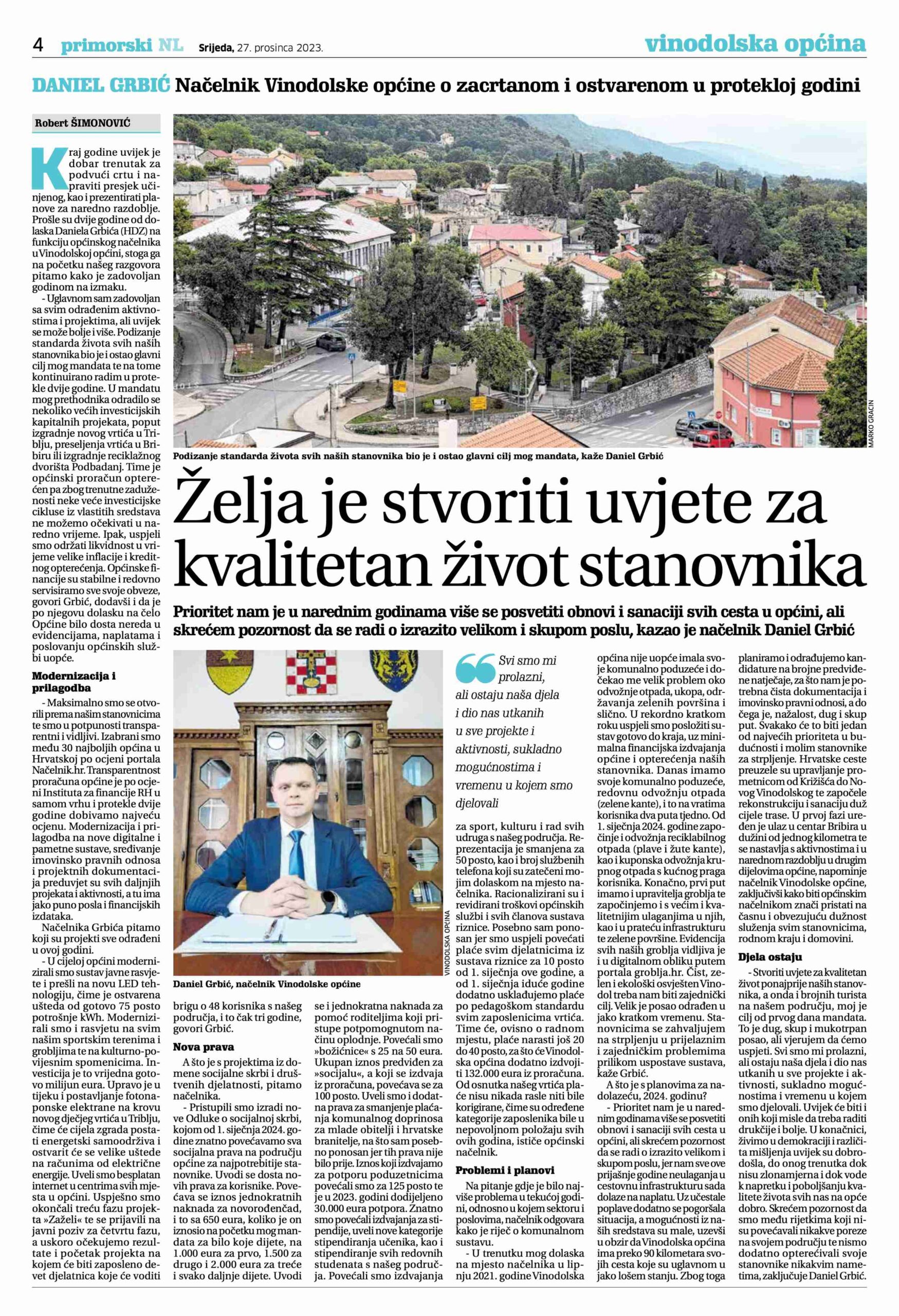 DANIEL GRBIĆ: Načelnik Vinodolske općine o zacrtanom i ostvarenom u protekloj godini