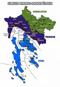 - Primorje (Rijeka, Bakar, Crikvenica, Kastav, Kraljevica, Novi Vinodolski, Opatija, Čavle, Jelenje, Klana, Kostrena, Lovran, Matulji, Mošćenička Draga, Vinodolska općina i Viškovo)
