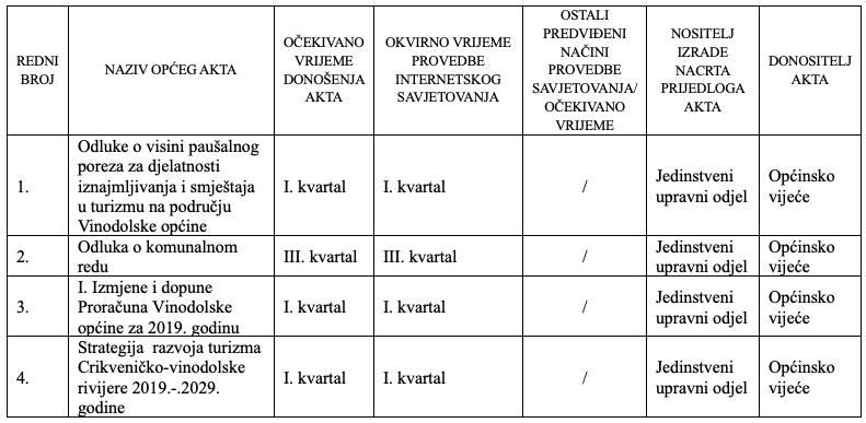PLAN SAVJETOVANJA S JAVNOŠĆU ZA 2019. GODINU