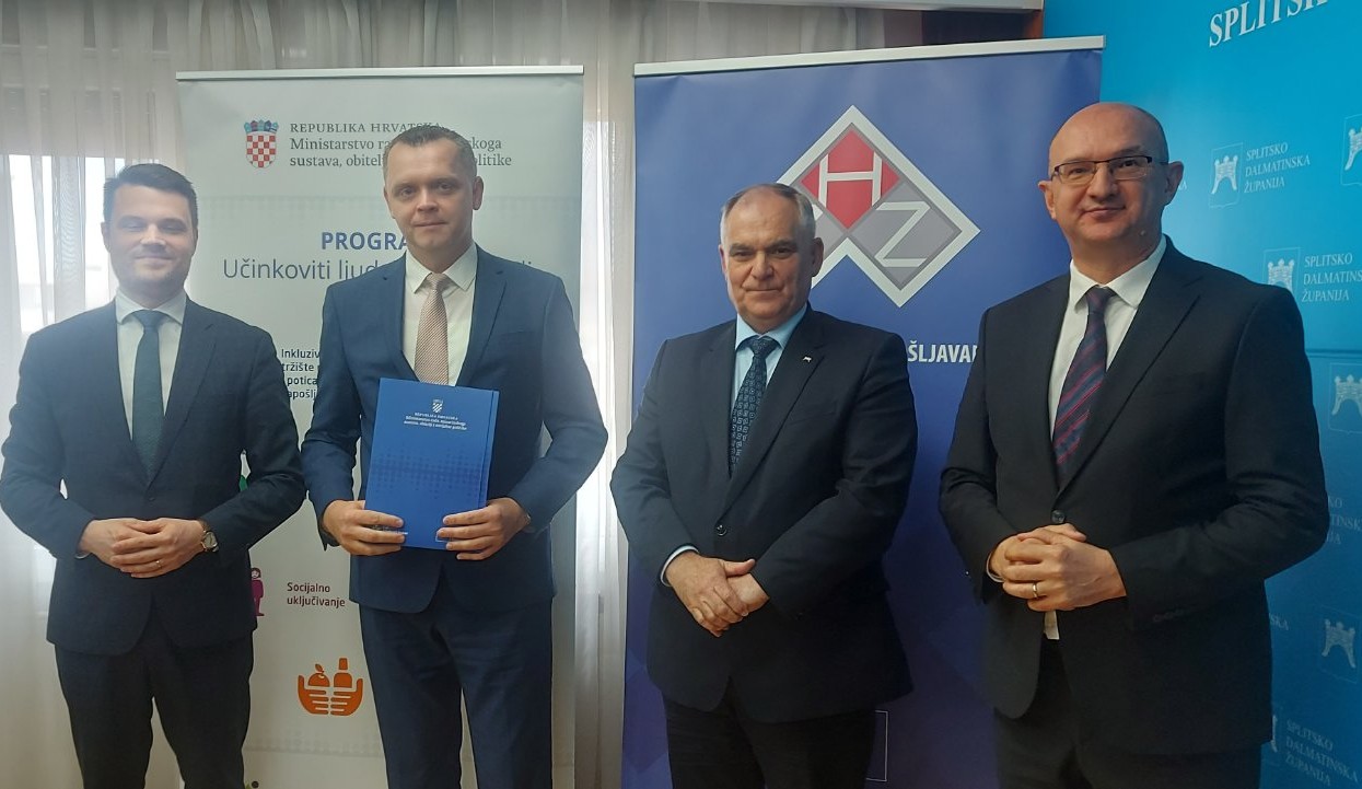 Dodijeljena su 32 ugovora vrijedna više od 25 milijuna eura u okviru poziva „ Zaželi – prevencija institucionalizacije“. Ugovore su dodijelili državni tajnik Ivan Vidiš, župan Splitsko-dalmatinske županije Blaženko Boban i ravnatelj Hrvatskog zavoda za zapošljavanje Ante Lončar.